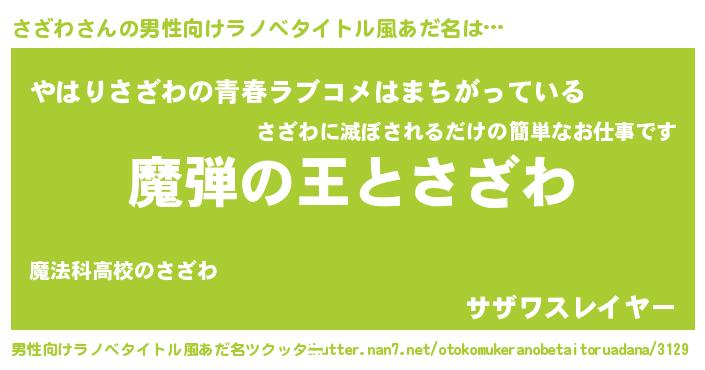 | ヒーロー風カッコイイあだ名 | 『仮面サザダー』『ウルトラさざわマン』 |