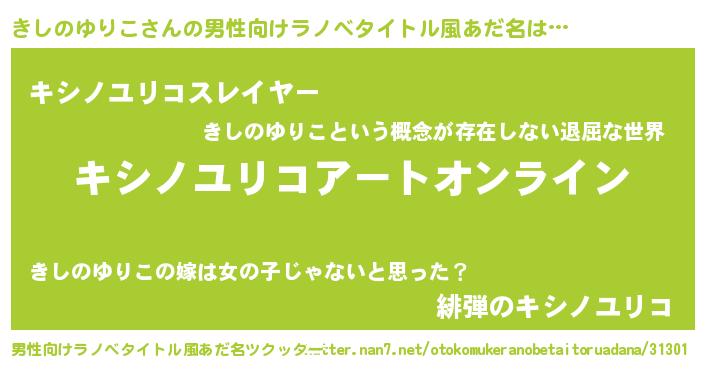 | 女子向けラノベタイトル風あだ名 | 『きしのゆりこ姫と円卓の騎士』 |