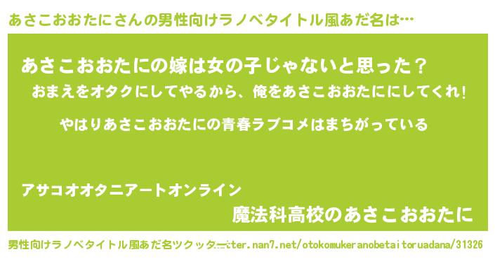 | 胡散臭い通販商品みたいなあだ名 | 『幸せが訪れる高級そうな壺…その名も「あさこおおたに」』 |