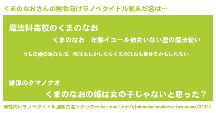 | ファンタジー風あだ名 | 『エターナルクマノナオー』『ゼクマトゥ』 |