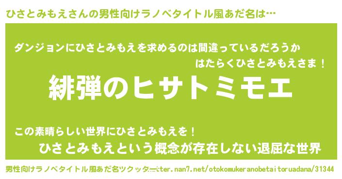 | 意味不明あだ名 | 『とにかく怪しいひさとみもえ』 |