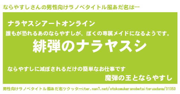 | ヒーロー風カッコイイあだ名 | 『スーパーナラヤスシ』『仮面ナラダー』 |