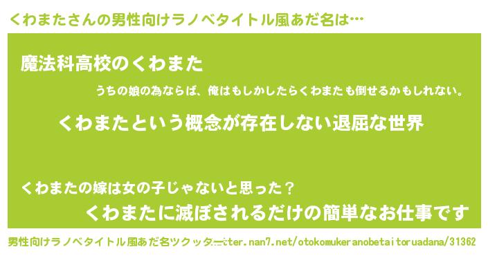 | 意味不明あだ名 | 『永久保存くわまた』『自称くわまた』 |