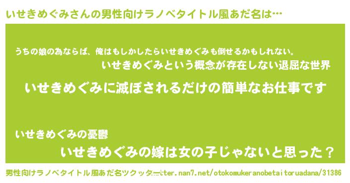 | 女子向けラノベタイトル風あだ名 | 『横柄いせきめぐみと宰相陛下』 |