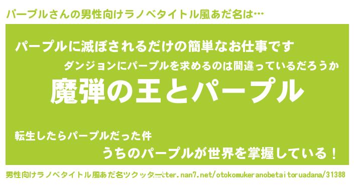 | 女子向けラノベタイトル風あだ名 | 『パープルが死なない童話 林檎のパープルの診療簿』 |