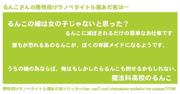 | 女子向けラノベタイトル風あだ名 | 『るんこの契約王妃』『るんこ様がみてる』 |