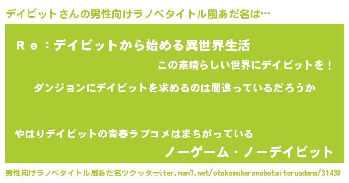 | 女子向けラノベタイトル風あだ名 | 『デイビットは平凡を望む』 |