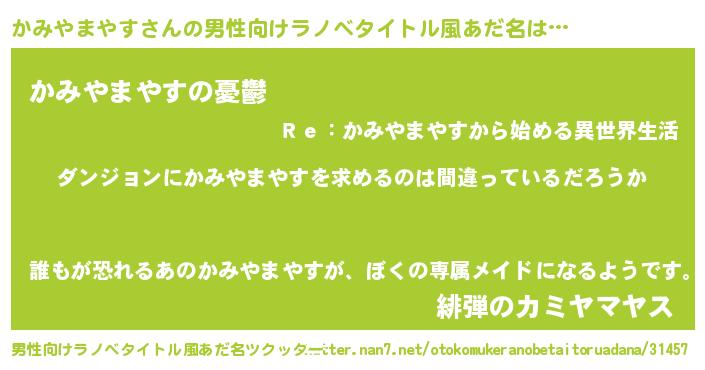 | 女子向けラノベタイトル風あだ名 | 『かみやまやすは平凡を望む』 |