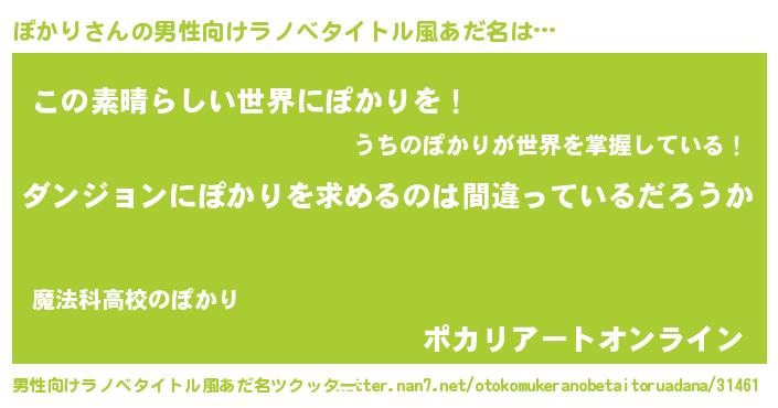 | 意味不明あだ名 | 『とにかく怪しいぽかり』『自称ぽかり』 |