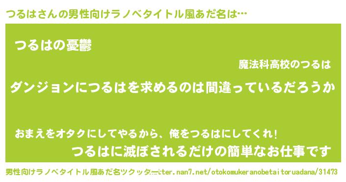 | 女子向けラノベタイトル風あだ名 | 『つるはは平凡を望む』 |
