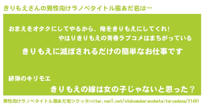 | ヒーロー風カッコイイあだ名 | 『慈愛の使者きりもえ』『天弓騎士キリ』 |