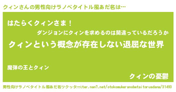 | 胡散臭い通販商品みたいなあだ名 | 『来世でも幸せになれる健康食品…その名も「クィン」』 |
