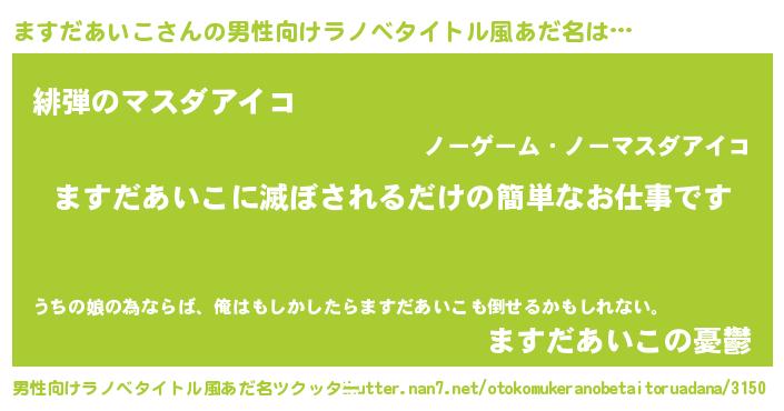 | 胡散臭い通販商品みたいなあだ名 | 『億万長者になれる霊験あらたかなお札…その名も「ますだあいこ」』 |