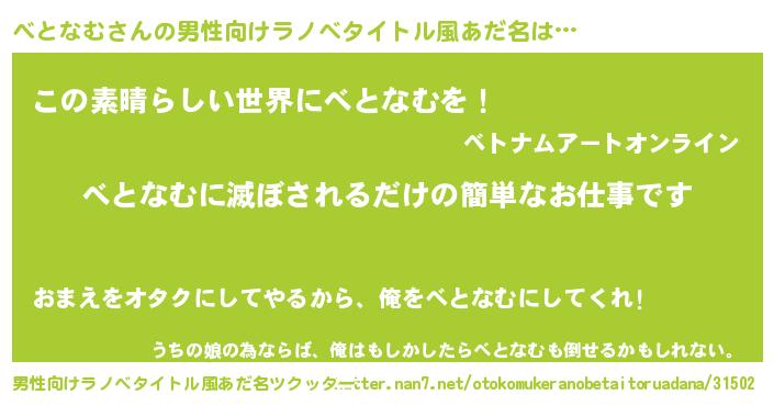 | 意味不明あだ名 | 『住所不定無職べとなむ(8歳)』 |