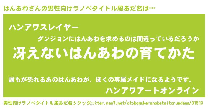 | 胡散臭い通販商品みたいなあだ名 | 『モテモテ間違いなしブレスレット…その名も「はんあわ」』 |