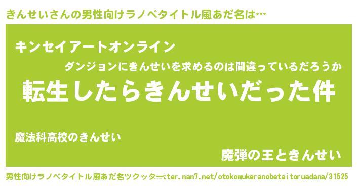 | 意味不明あだ名 | 『たけのこ科きんせい属』『自称きんせい』 |