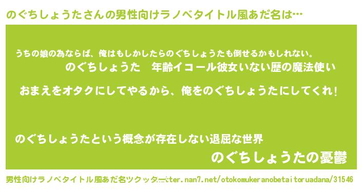 | 女子向けラノベタイトル風あだ名 | 『のぐちしょうた恋絵巻』 |