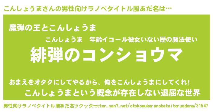 | 意味不明あだ名 | 『住所不定無職こんしょうま(12歳)』 |