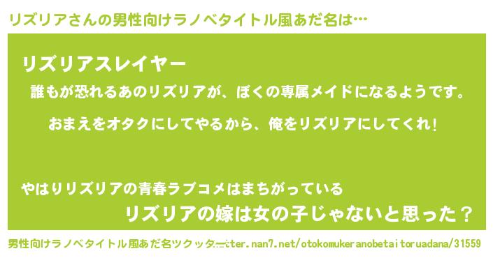 | 女子向けラノベタイトル風あだ名 | 『リズリア夫妻のなれそめ』 |