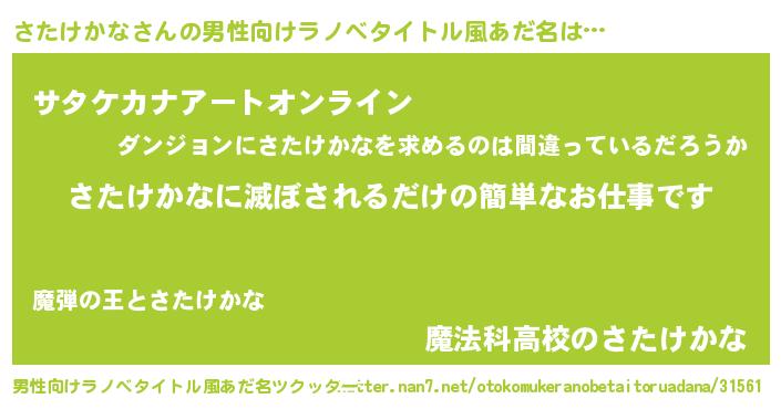 | 胡散臭い通販商品みたいなあだ名 | 『億万長者になれるブレスレット…その名も「さたけかな」』 |