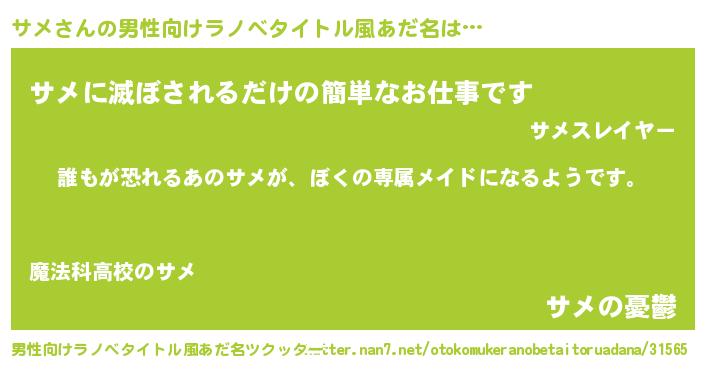 | 女子向けラノベタイトル風あだ名 | 『異世界でカフェサメを開店しました。』 |