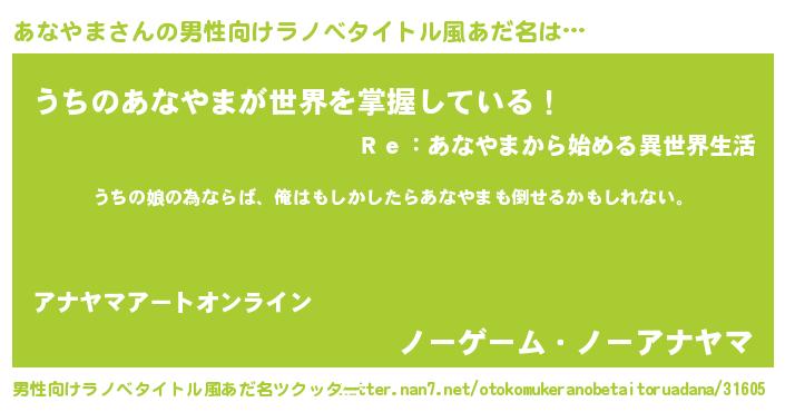 | 女子向けラノベタイトル風あだ名 | 『あなやま伯爵の花嫁』『あなやま恋絵巻』 |