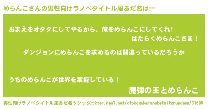 | ヒーロー風カッコイイあだ名 | 『暗黒騎士メラ』『愛の使者めらんこ』 |