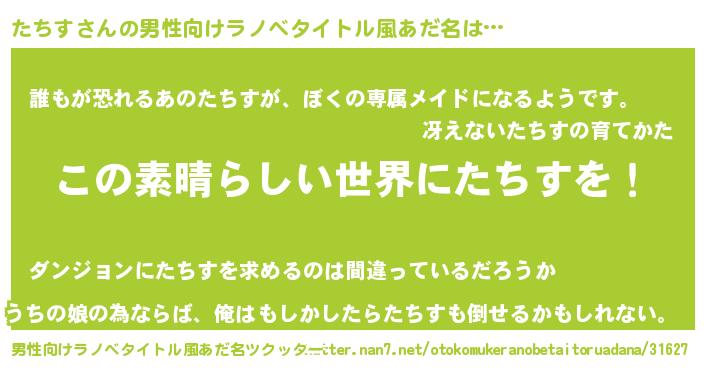 | 意味不明あだ名 | 『住所不定無職たちす(13歳)』『自称たちす』 |