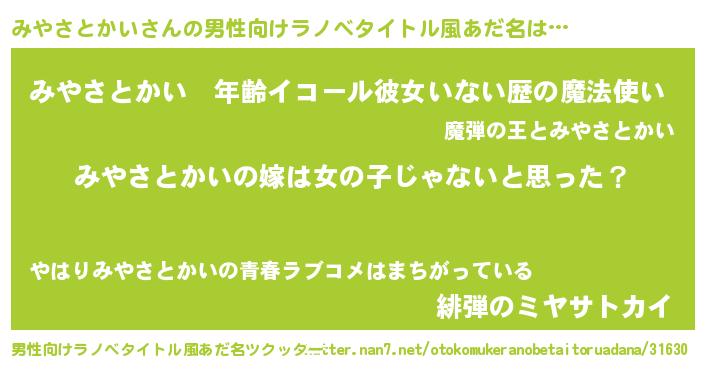 みやさとかいさんの男性向けラノベタイトル風あだ名をツクッター!