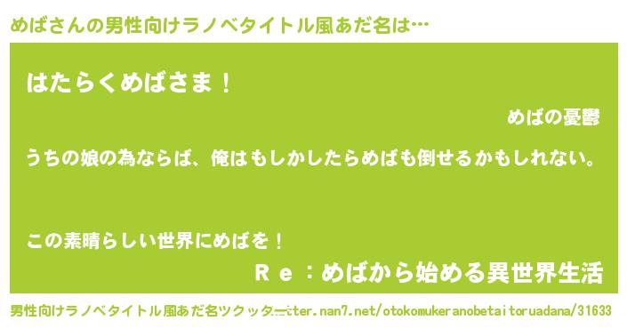 | 2回繰り返すあだ名 | 『めめばば』『めそめそ』『めばめば』 |