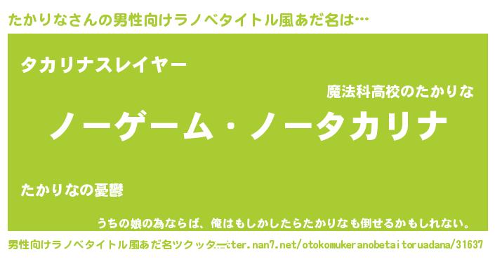 | 女子向けラノベタイトル風あだ名 | 『たかりな恋絵巻』『たかりなの婚約者』 |