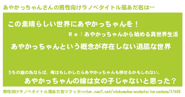 | 意味不明あだ名 | 『永久保存あやかっちゃん』 |