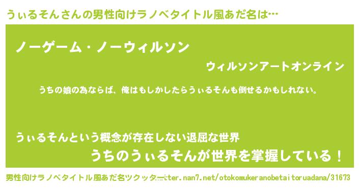 | 女子向けラノベタイトル風あだ名 | 『うぃるそんの婚約者』 |