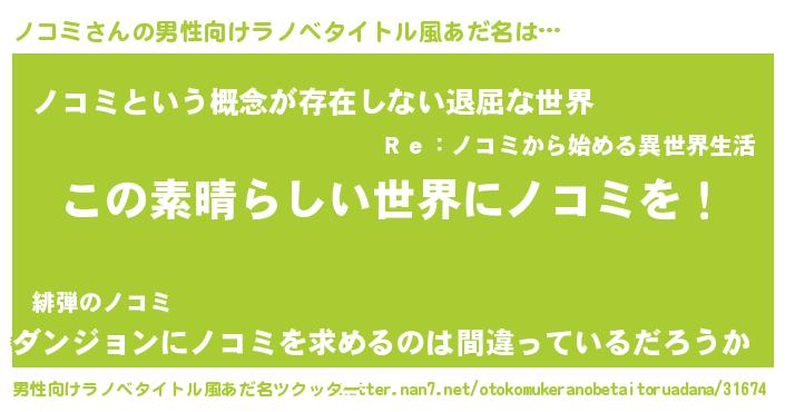 | 胡散臭い通販商品みたいなあだ名 | 『あなたにだけ特別に提供する100年もののヴィンテージワイン…その名も「ノコミ」』 |
