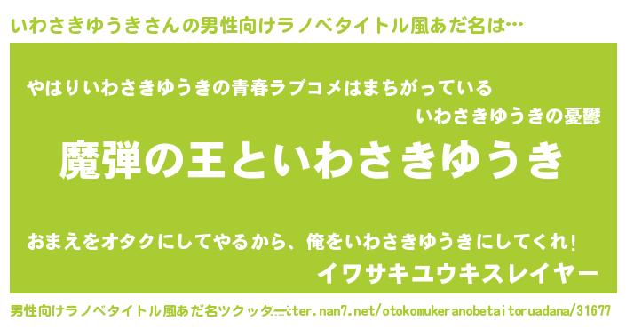 | ヒーロー風カッコイイあだ名 | 『仮面イワダー』『ネオイワサキユウキ』 |
