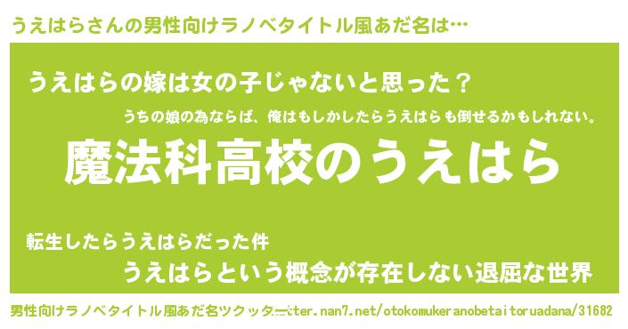 | 女子向けラノベタイトル風あだ名 | 『うえはらなんてお断りですっ。』 |