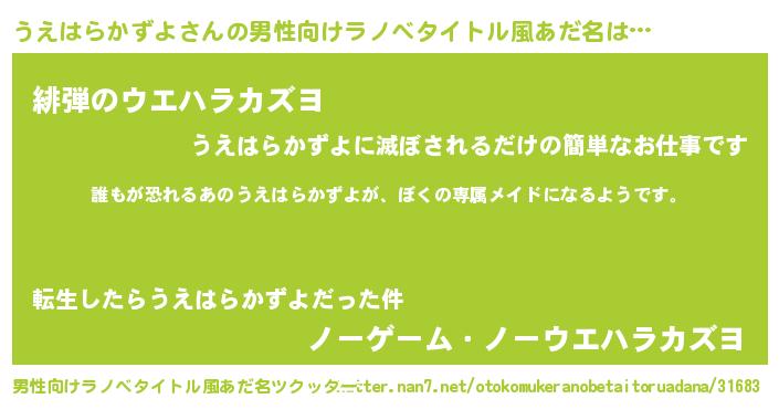| 女子向けラノベタイトル風あだ名 | 『うえはらかずよの契約王妃』 |