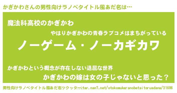 | 女子向けラノベタイトル風あだ名 | 『かぎかわ恋絵巻』『かぎかわ様がみてる』 |