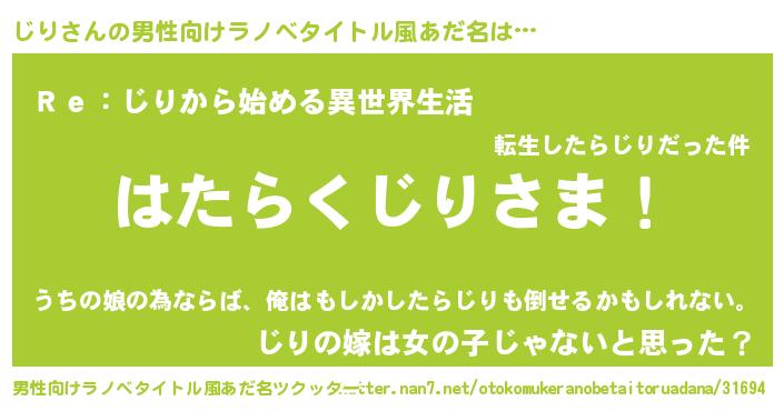 | 女子向けラノベタイトル風あだ名 | 『首の姫と首なしじり』『じり伯爵の花嫁』 |