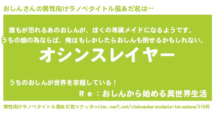 | 胡散臭い通販商品みたいなあだ名 | 『絶対に幸福をもたらす健康食品…その名も「おしん」』 |