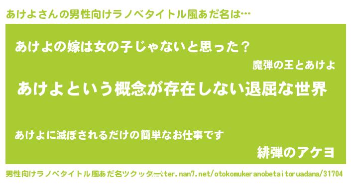 | 胡散臭い通販商品みたいなあだ名 | 『絶対に幸福をもたらす健康食品…その名も「あけよ」』 |