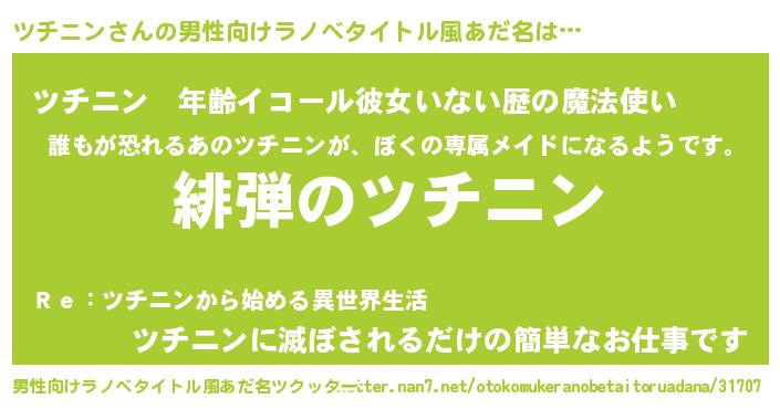 | 胡散臭い通販商品みたいなあだ名 | 『絶対に幸福をもたらす水素水…その名も「ツチニン」』 |