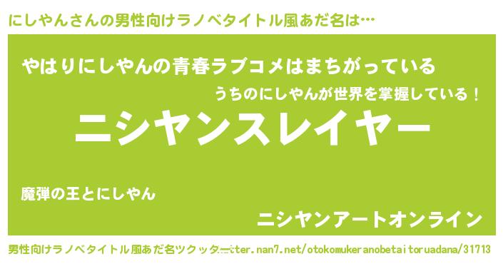 | ヒーロー風カッコイイあだ名 | 『ウルトラにしやんマン』『仮面ニシダー』 |