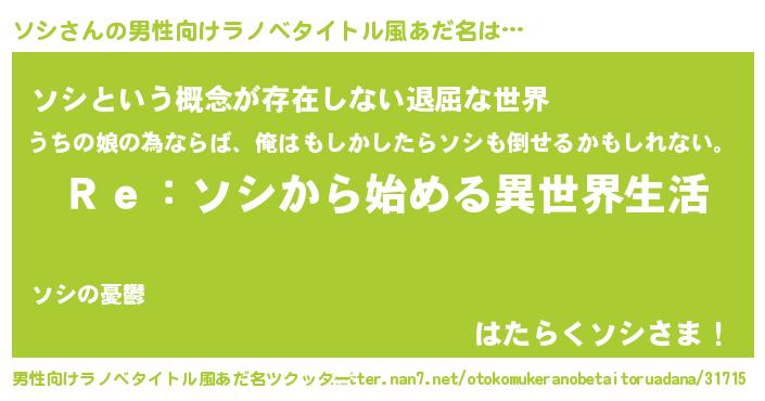 | 意味不明あだ名 | 『自称ソシ』『永久保存ソシ』 |