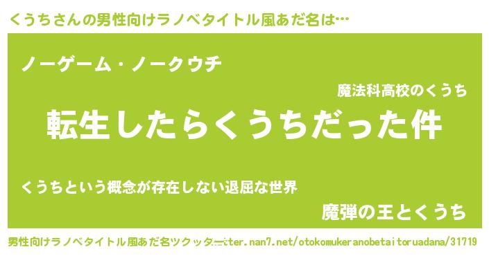 | 意味不明あだ名 | 『たけのこ科くうち属』『自称くうち』 |