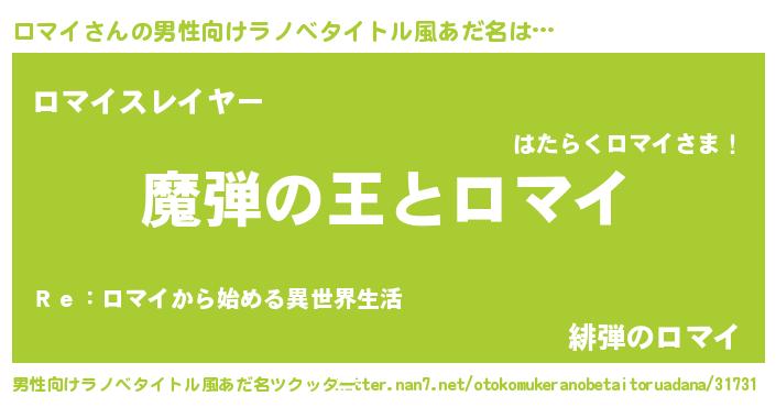 | 意味不明あだ名 | 『住所不定無職ロマイ(12歳)』『自称ロマイ』 |