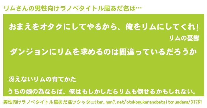 | ヘコむあだ名 | 『リムっぺ』『牛乳』『リムにゅー』 |