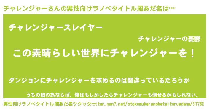 | ことわざ | 壁に耳あり障子に目あり『チャレンジャーに耳ありチャレンジャーに目あり』 |