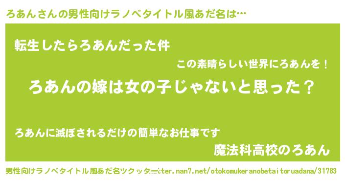 | 意味不明あだ名 | 『とにかく怪しいろあん』『自称ろあん』 |
