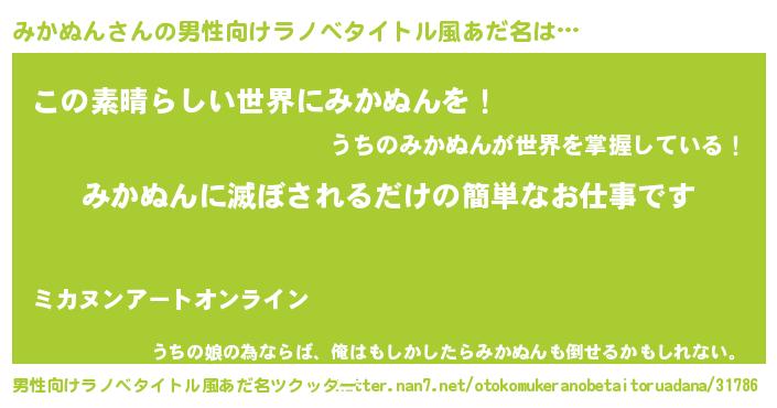 | 意味不明あだ名 | 『住所不定無職みかぬん(1歳)』 |